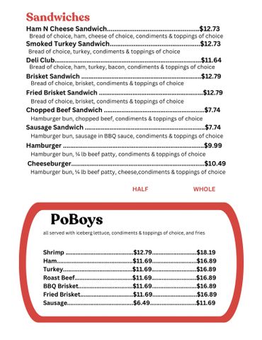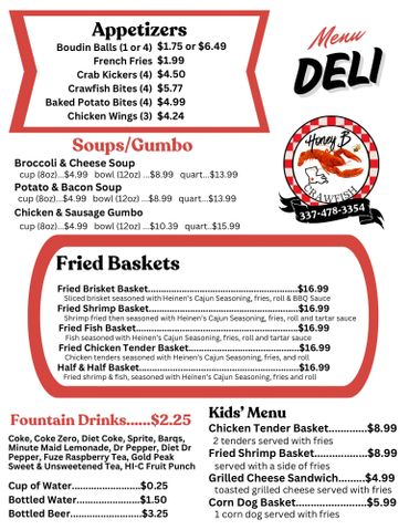 Our deli has limited options during the Fall. See our Fall Menu for more information, and see our Seasonal Menu for what we offer during Crawfish Season (late Jan-June)