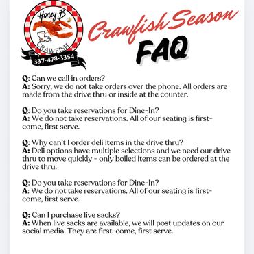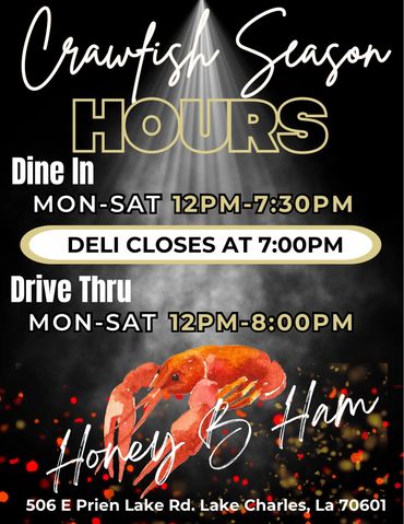 We love our customers and invite you to visit us during normal business hours, especially if you're interested in our holiday meals featuring delicious turkey and hams. During crawfish season, come by if you're craving some Louisiana crawfish right here in Lake Charles.